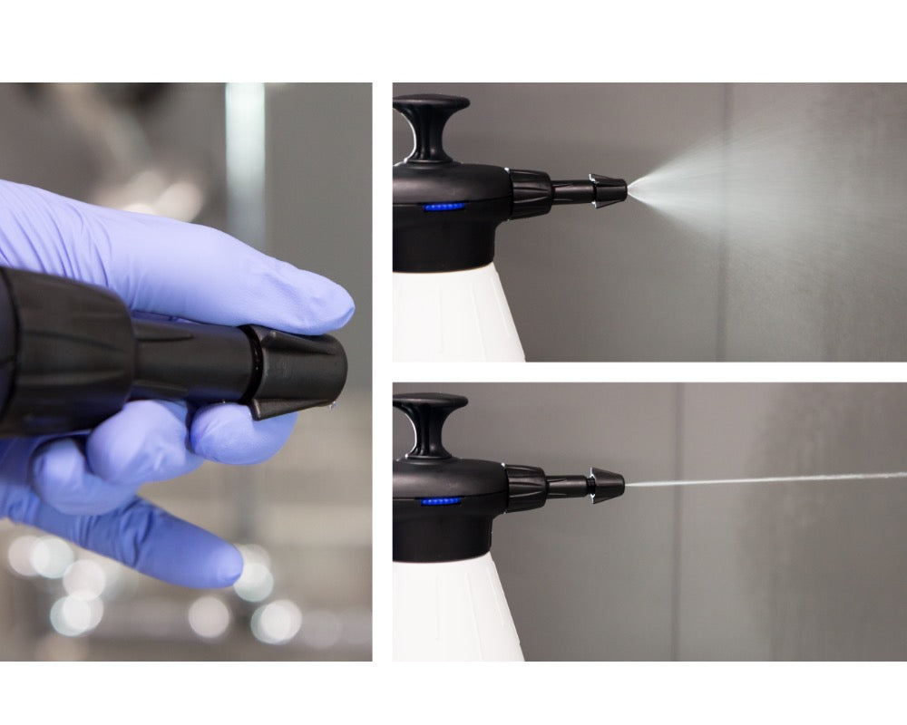 Table and bar top sanitation made easy with this ergonomic alternative to traditional trigger sprayers. Spray in any direction, even upside down.
