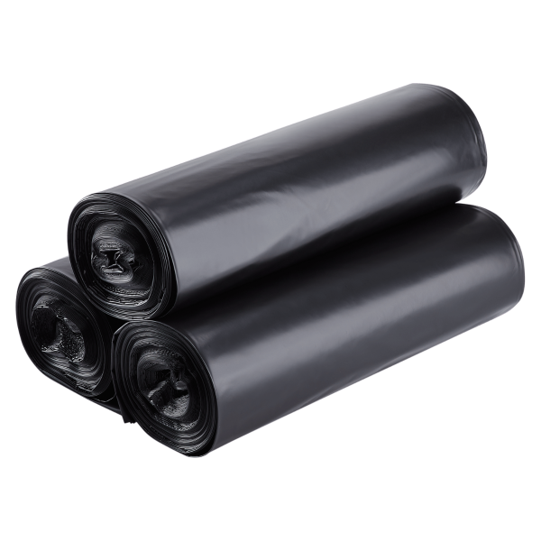 Karat® low-density, 55-60 gallon trash can liners are ideal for heavy trash, debris and is strong enough to hold sharper objects. These low-density trash liners are opaque black, so it can help hide the contents within the bag. These 38” x 58” liners can be used in a variety of areas like kitchens, restaurants, hotels, high-activity restrooms and many more. Manage your business’s waste with ease with our low-density trash can liners! Each package provides 100 trash can liners and has 4 rolls with 25 pieces in each.