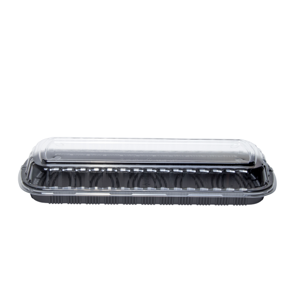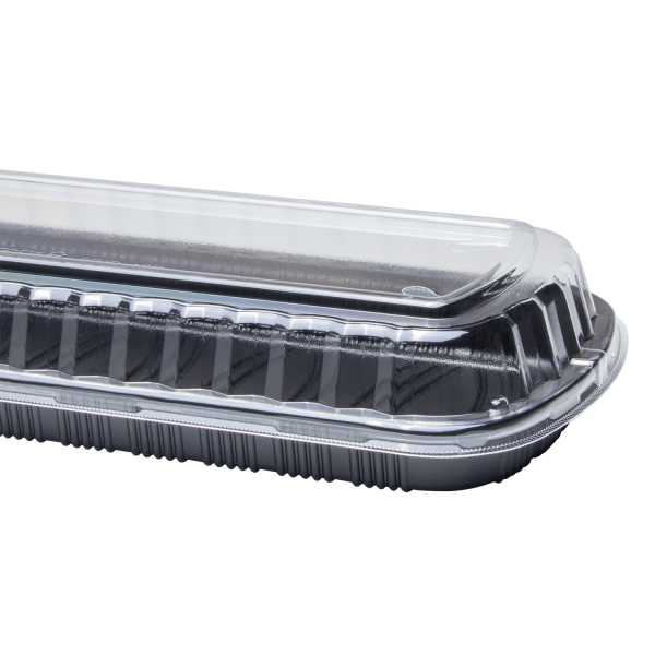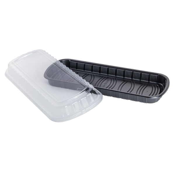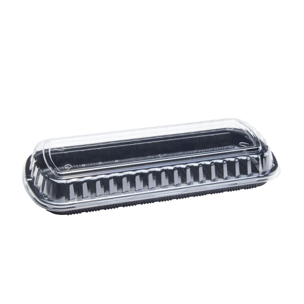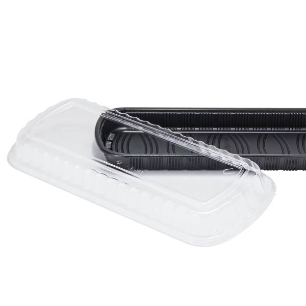 [100 ct] Full Slab Black PP Plastic Rib Container with Clear OPS lid