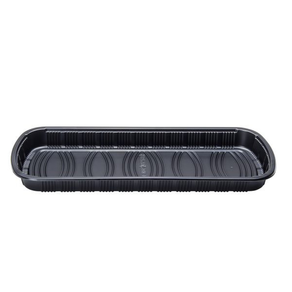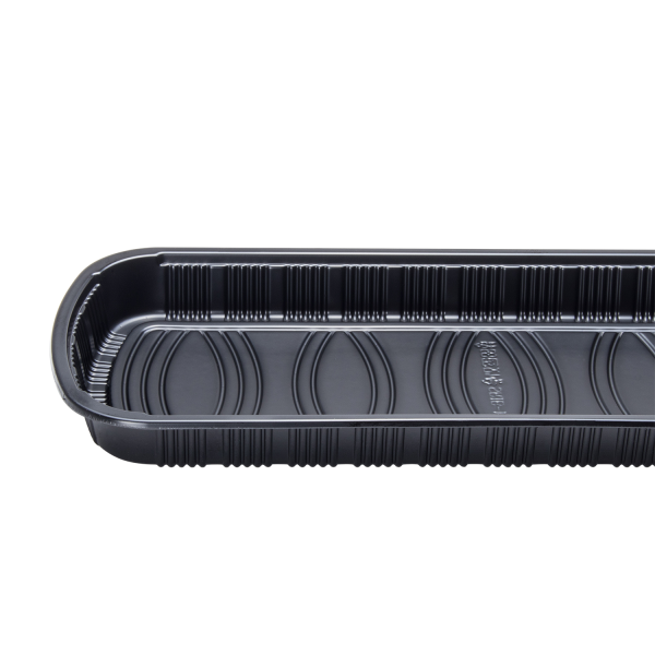 Karat® Full Slab Black PP Rib Containers are made from high-quality PP material with a temperature tolerance of -4~248° F (-20~120° C). These containers have a matching OPS lid and can tolerate a temperature of 32~194°F (O~90° C) and but is not microwaveable. These rib containers are perfect for showing off ribs, and other entrées and will securely take your food from your business to your customers!