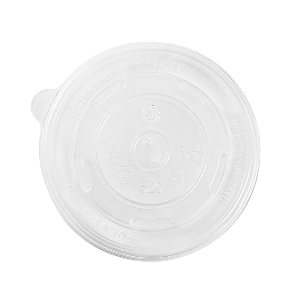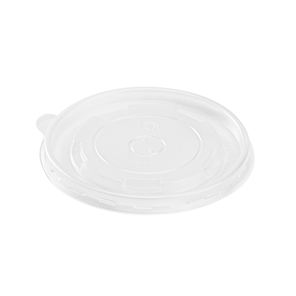 Karat high quality polypropylene (PP) flat lids are design to fit Karat double poly paper cold/hot food containers. Flat lids feature a venting hole for hot food items such as mashed potatoes and soups.