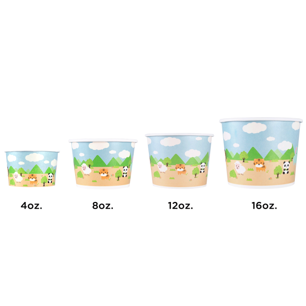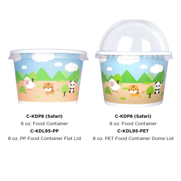 [1,000 ct] 8 oz Paper Food Containers | 95 mm | Safari Print