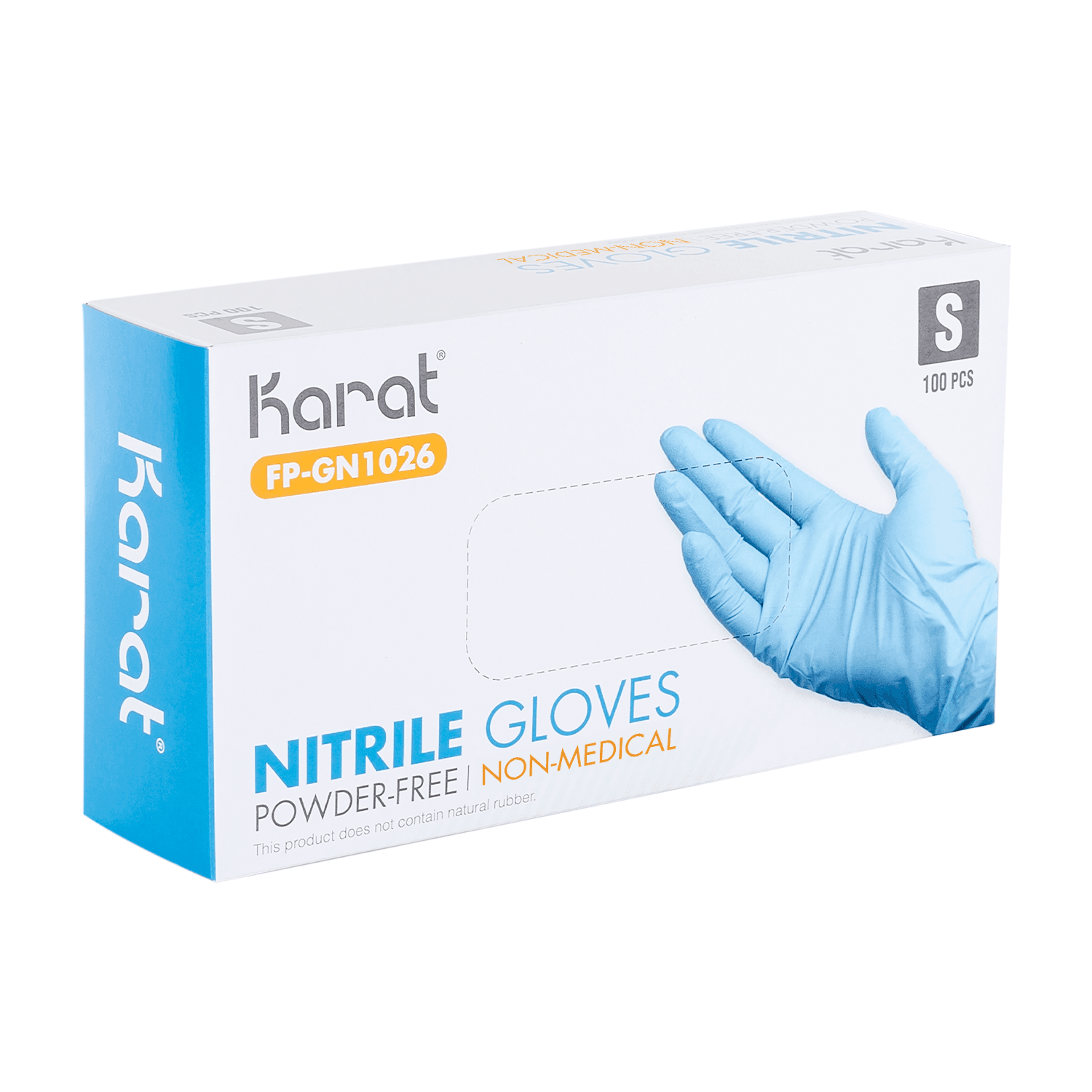 Karat Nitrile Gloves contain no latex and are powder-free. Having the highest level of touch sensitivity due to the glove’s ability to mold to your hand for a good fit, our nitrile gloves are good to wear for an extended amount of time. Of the four material types of gloves we offer, our nitrile gloves are the most puncture resistant and are colored blue to help identify if the glove has been punctured. These gloves are intended for food preparation purposes.