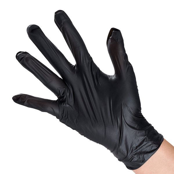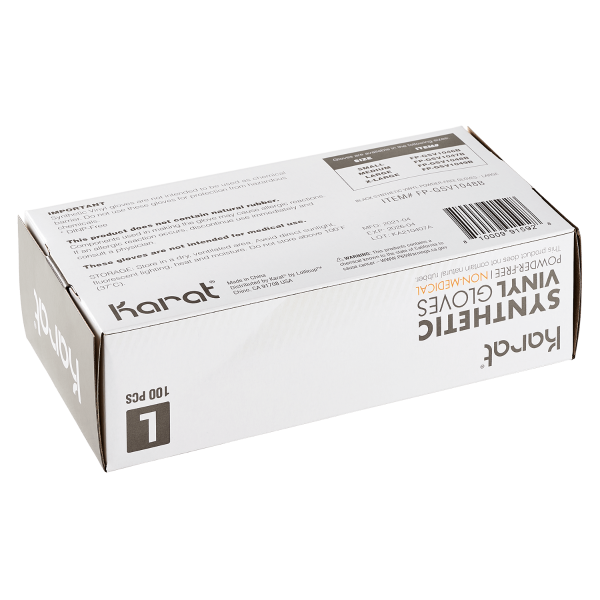 Karat Black Synthetic Vinyl Gloves are made from a blend of professional quality vinyl and nitrile materials which are comfortable for long wear yet tight and secure for your protection. Great for use in hospitals, restaurants, or home where disposable gloves are needed.