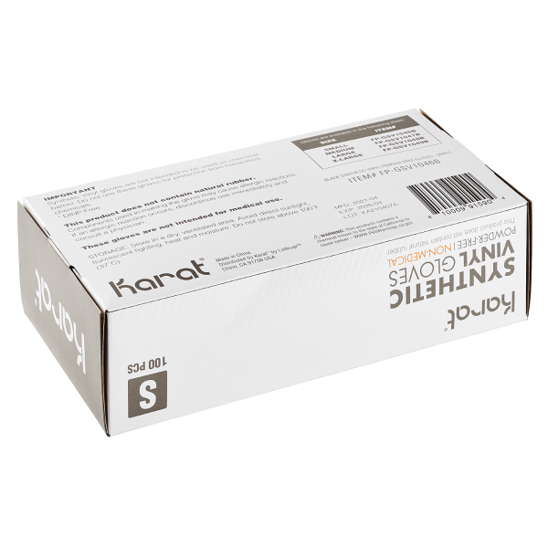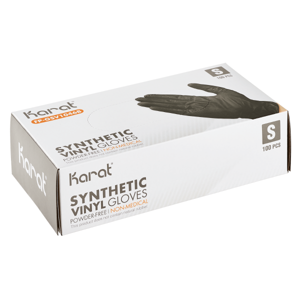 Karat Black Synthetic Vinyl Gloves are made from a blend of professional quality vinyl and nitrile materials which are comfortable for long wear yet tight and secure for your protection. Great for use in hospitals, restaurants, or home where disposable gloves are needed.