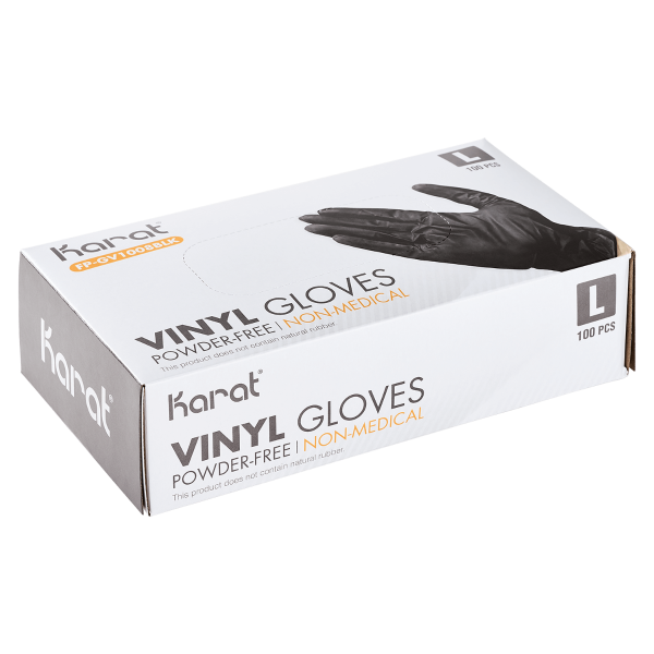 The Vinyl Black Gloves are the cost efficient option for comfortable every day disposable gloves. Select the black color to give your staff a premium look! These types of gloves are most popular for use in restaurants, salons and tattoo shops because they are effective in protecting hands against foods, oily substances and other liquids. Vinyl gloves are stretchy which make it easy to put on and take off.