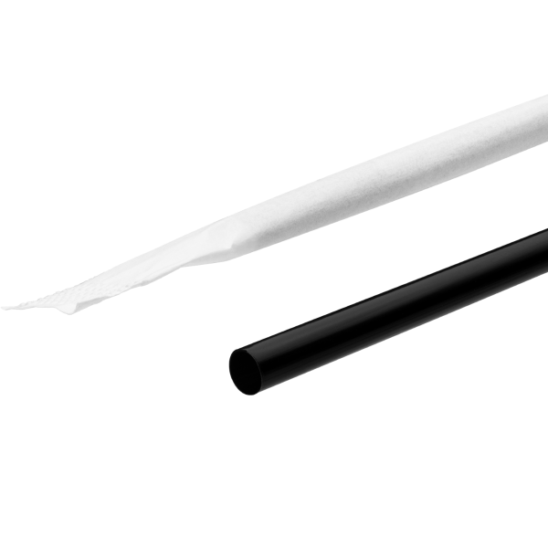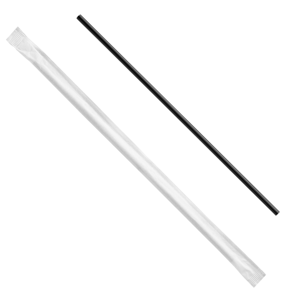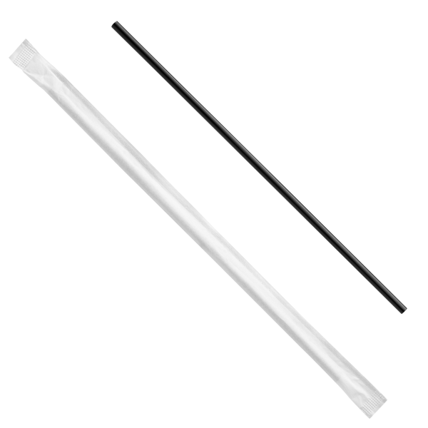 - Individually wrapped 5.75″ black stir straw
