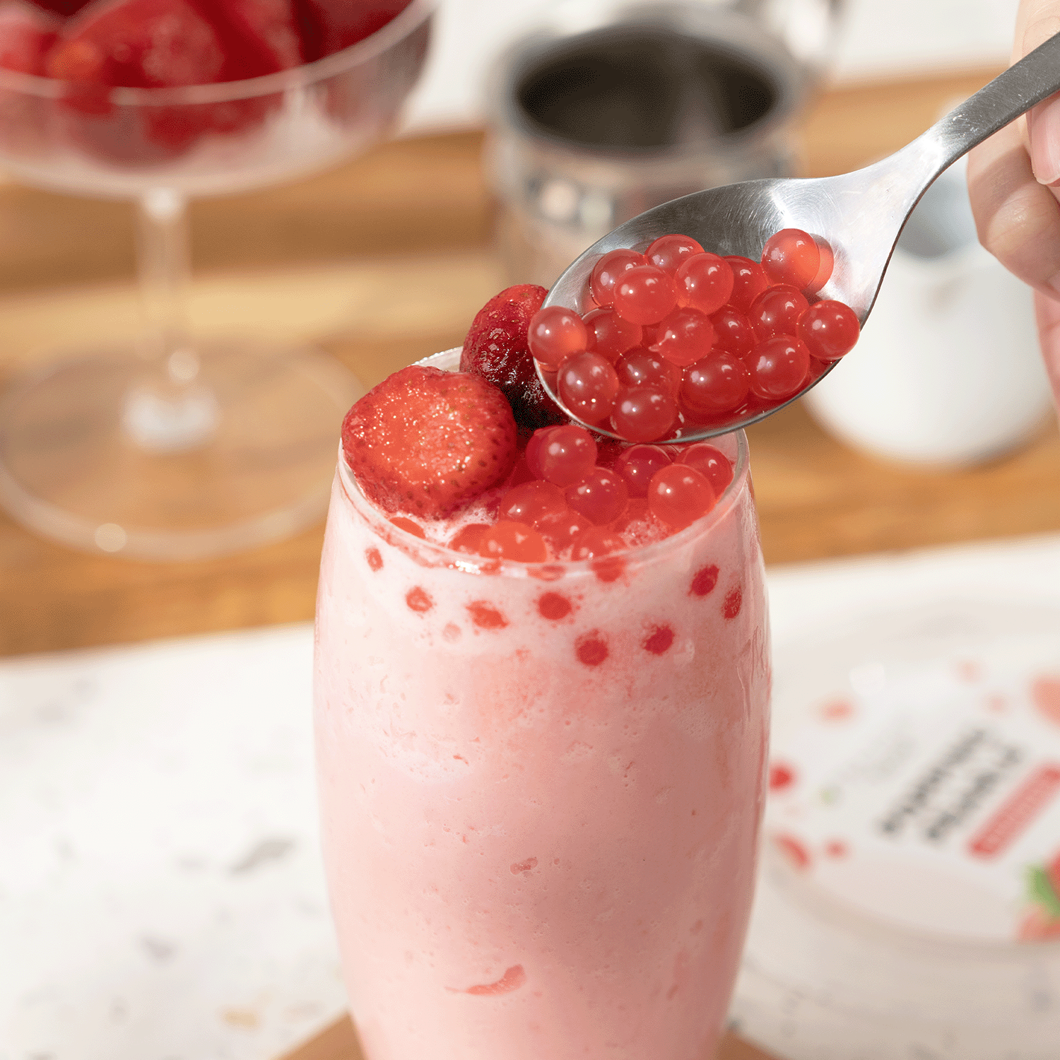 Experience the taste that took America by storm with Tea Zone Strawberry Popping Pearls, the #1 best-selling popping boba flavor in the USA! These vibrant pearls are bursting with juicy, sweet strawberry flavor, guaranteed to tantalize your taste buds and elevate any drink or dessert.