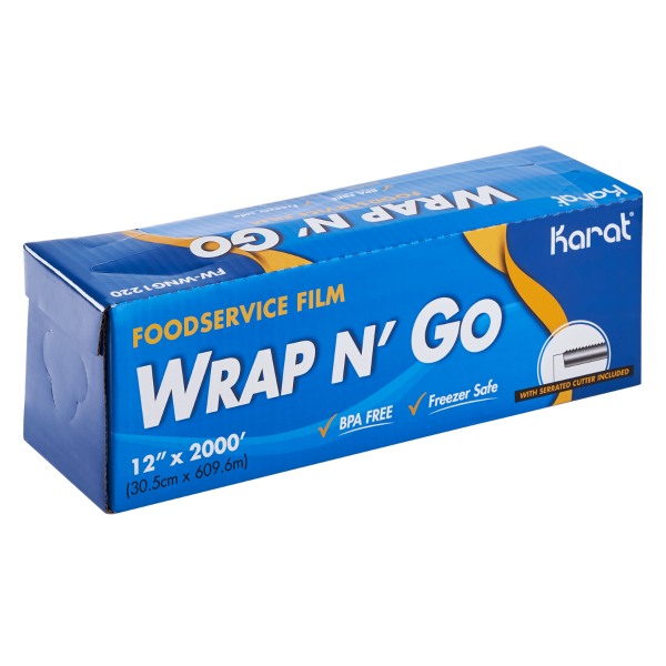 Karat® Foodservice Film is perfect keeping your food fresh or other products covered. This film is equipped with a convenient, serrated cutter that will provide quick cutting for efficient business operations. Each foodservice film is BPA-Free and is safe to put into the freezer. The foodservice film effortlessly clings, so it can seal the food or product until you are ready to use them! Also available in 2 other sizes to fit your food business’s needs.