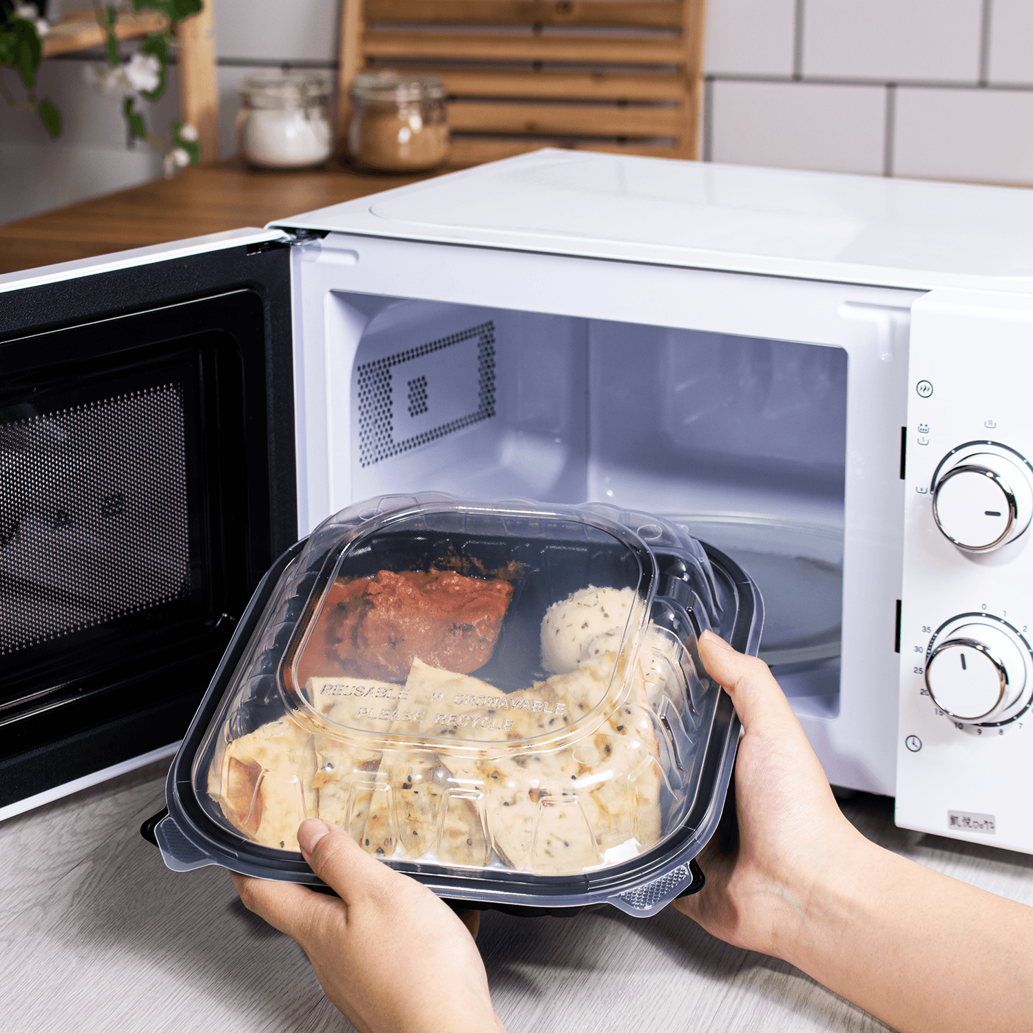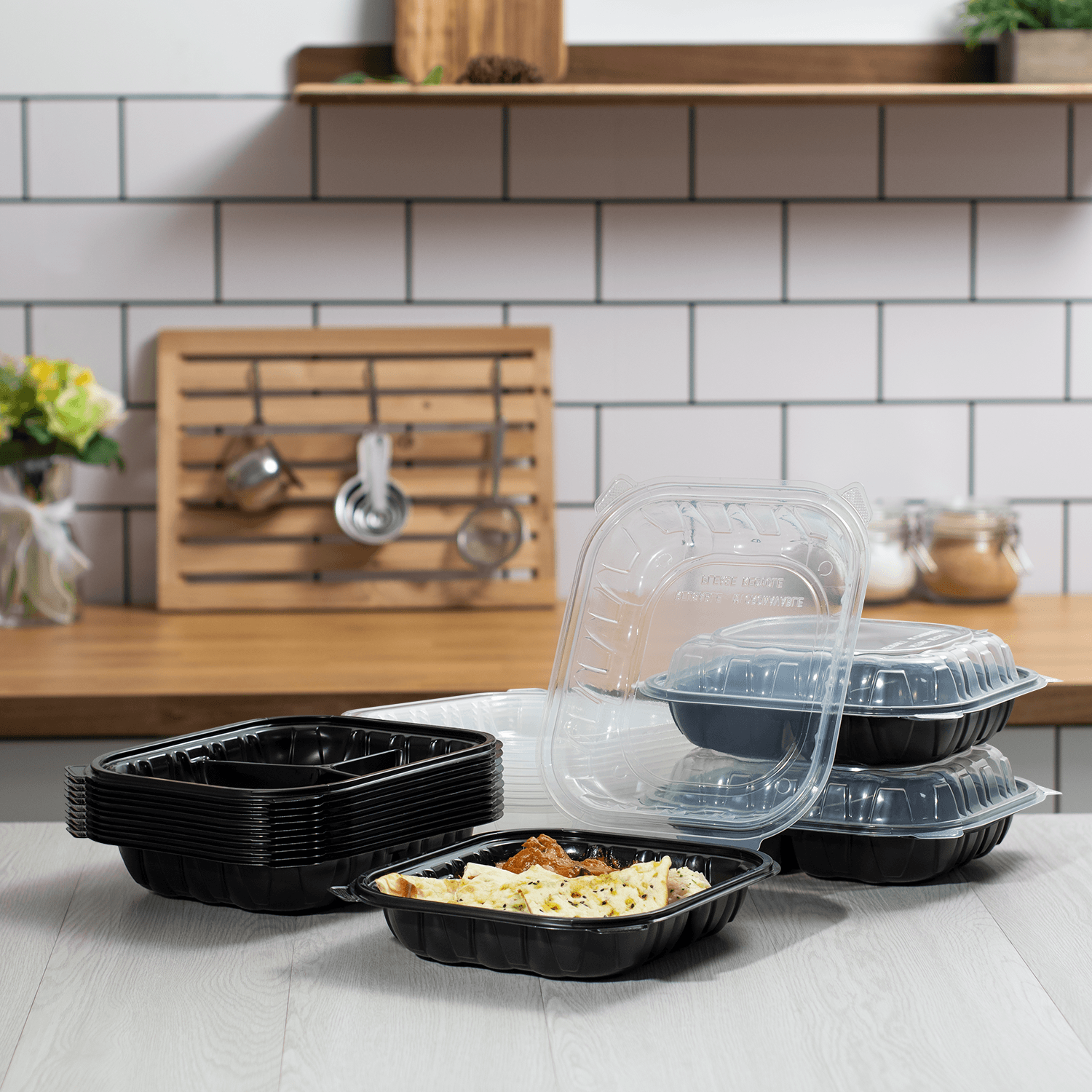 Karat 10.25″ X 9″ Premium PP Hinged Containers are ideal for take-out meals. Made of sturdy PP plastic, they are stackable and resistant to cracking. With 3 compartments, they are perfect for serving full meals with sides. The sturdy design has secure pull-lock tabs for easy food transportation.