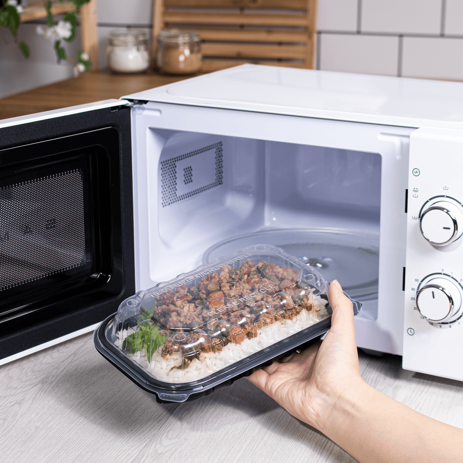 Karat® offers three types of hinged food containers, made of PET, PP, and Premium PP, designed for the safe and convenient transport of hot and cold foods. The Premium PP hinged containers are also ideal for hot, fresh food and microwaving, featuring four vents. These containers are sturdy and versatile, making them suitable for all types of food packaging.