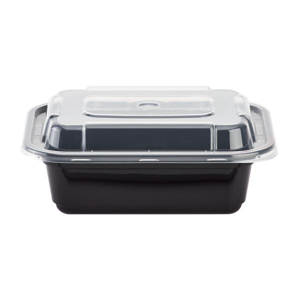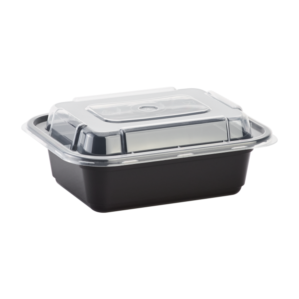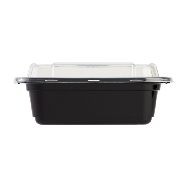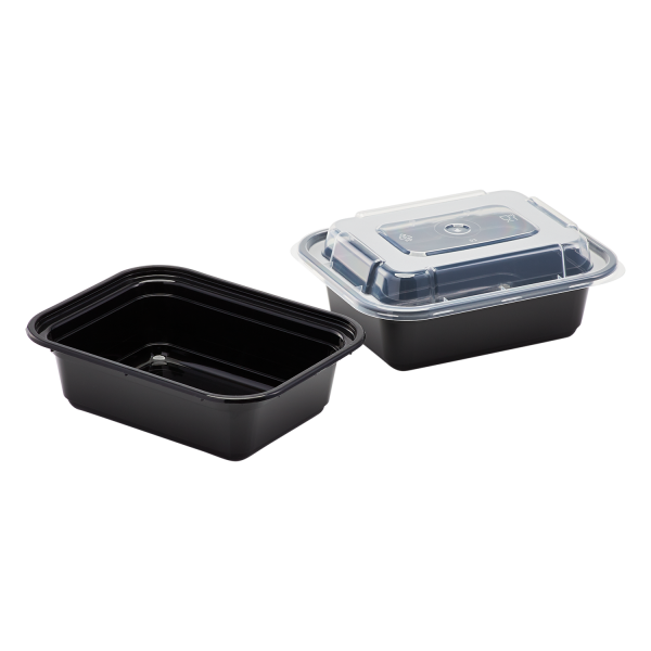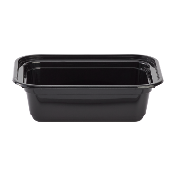 Karat round and rectangular black, PP injection molded containers and lids are great for takeout and leftovers. These containers are available in multiple sizes, and with multiple compartments. Containers are microwavable and dishwasher safe.