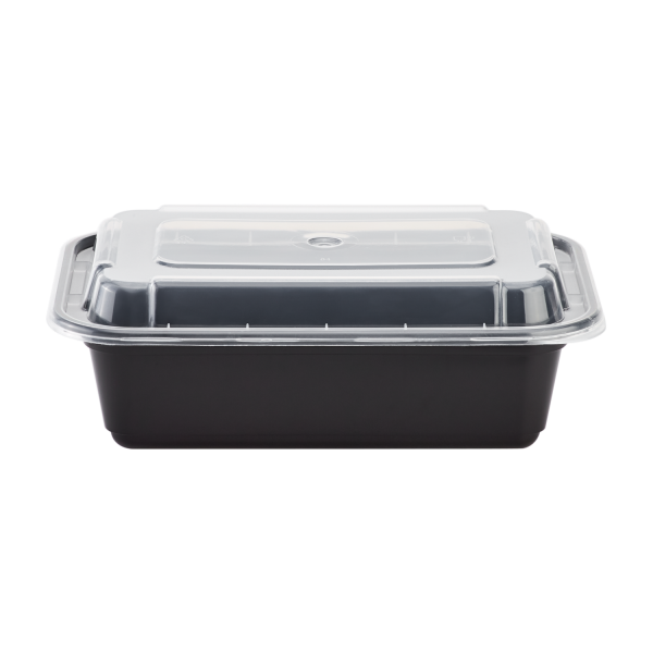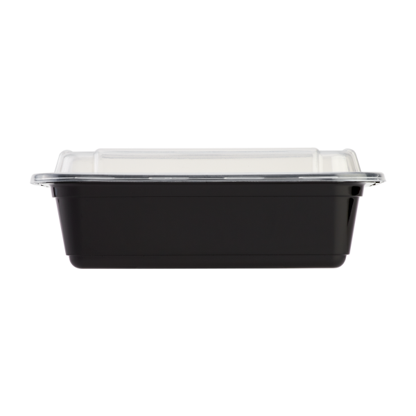 [150 sets] 24 oz PP Plastic Microwavable Rectangular Food Containers & Lids, Black