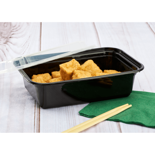 Karat round and rectangular black, PP injection molded containers and lids are great for takeout and leftovers. These containers are available in multiple sizes, and with multiple compartments. Containers are microwavable and dishwasher safe.