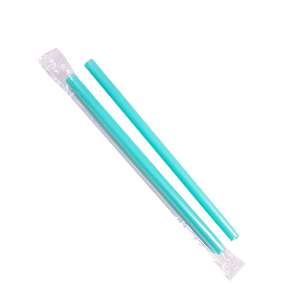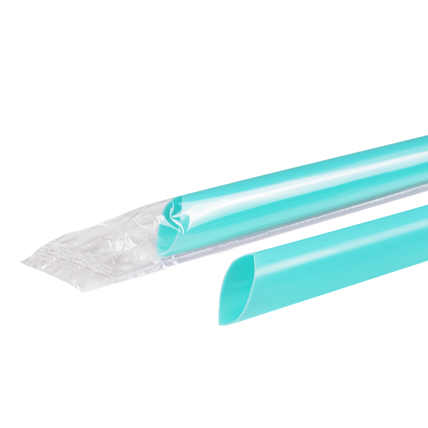 [1,600 ct] Boba Straws | Diagonal Cut | Individually Wrapped | Aqua (0.39″ x 9″)