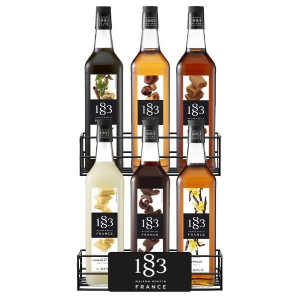 These sturdy, black wire racks proudly display and help organize your 1883 Maison Routin bottles on counter tops for easy access. Bottles shown not included. Holds up to 6 bottles.