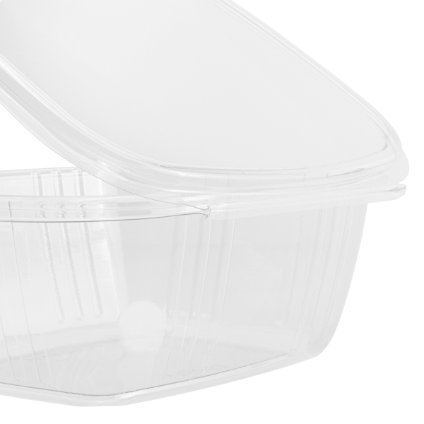 Karat PET Hinged Deli Container is perfect for pasta salads, fruit, deli sides and more! This hinged deli container is great for sealing and taking your food to go. Perfect for the deli counter or packing meals at home.