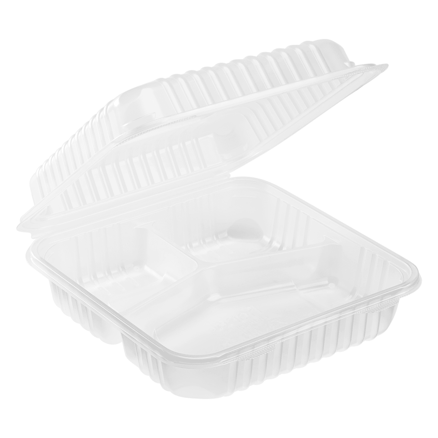 [200 ct] 9″ x 9″ 3-Compartment Hinged Food Containers | Clear | PP