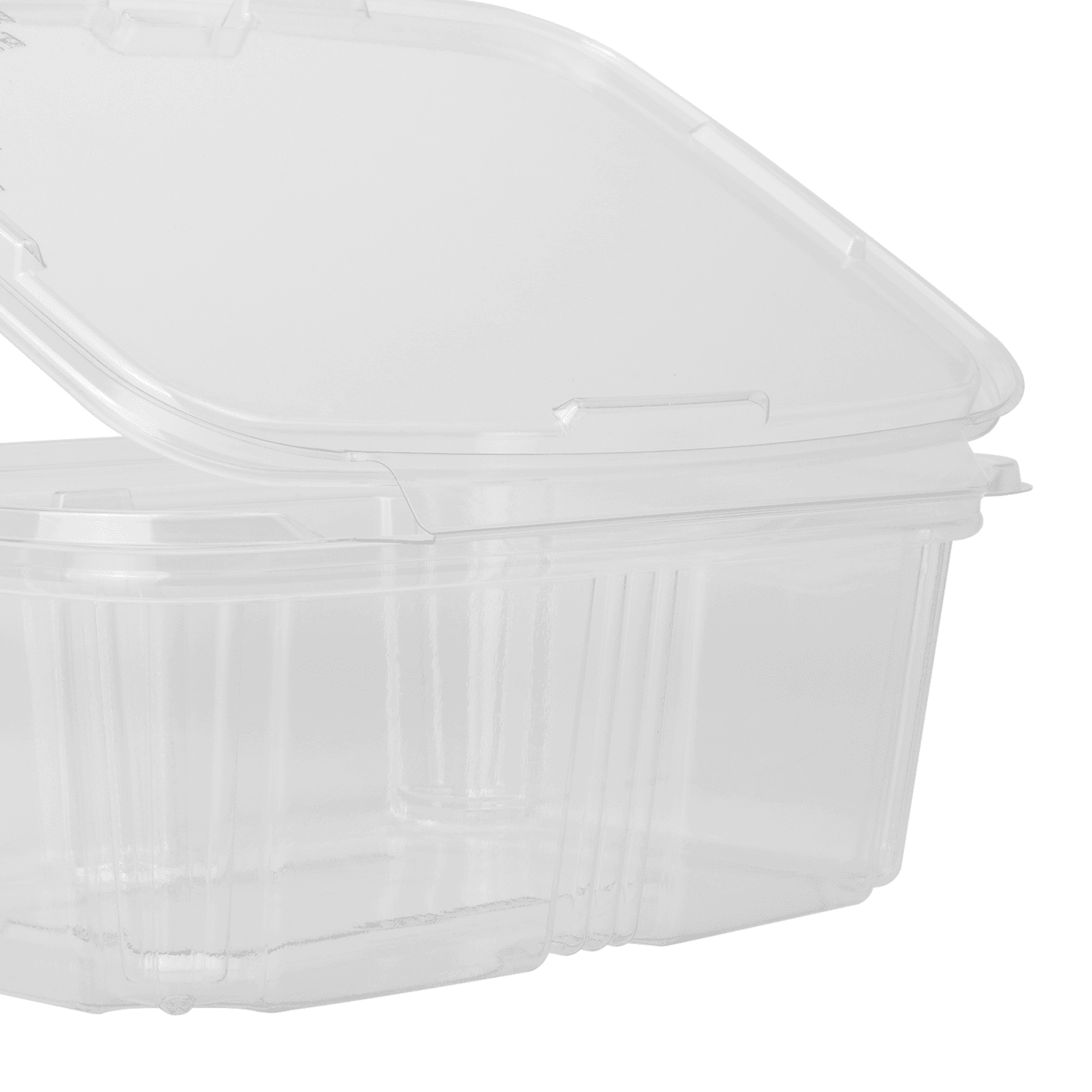 Crafted from durable PET material, these containers are built to withstand a wide range of temperatures, with a tolerance from -10°F to 120°F, ensuring your food stays fresh, whether it’s hot or cold. The sturdy hinged design makes these containers incredibly easy to open and close, providing a hassle-free experience for customers on-the-go who need a reliable, secure solution for transporting their meals.