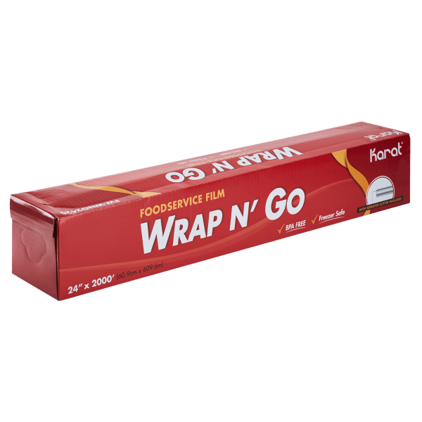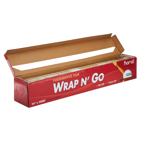 Karat® Foodservice Film is perfect keeping your food fresh or other products covered. This film is equipped with a convenient, serrated cutter that will provide quick cutting for efficient business operations. Each foodservice film is BPA-Free and is safe to put into the freezer. The foodservice film effortlessly clings, so it can seal the food or product until you are ready to use them! Also available in 2 other sizes to fit your food business’s needs.