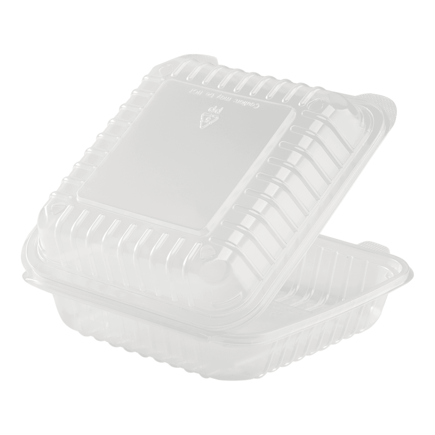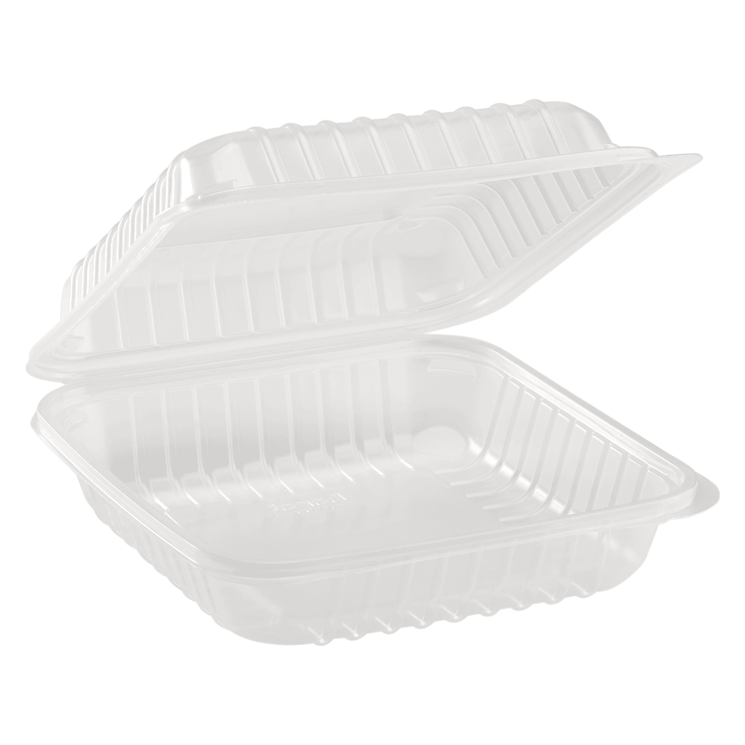 [250 ct] 8”x 8” Hinged Food Containers | PP | Clear