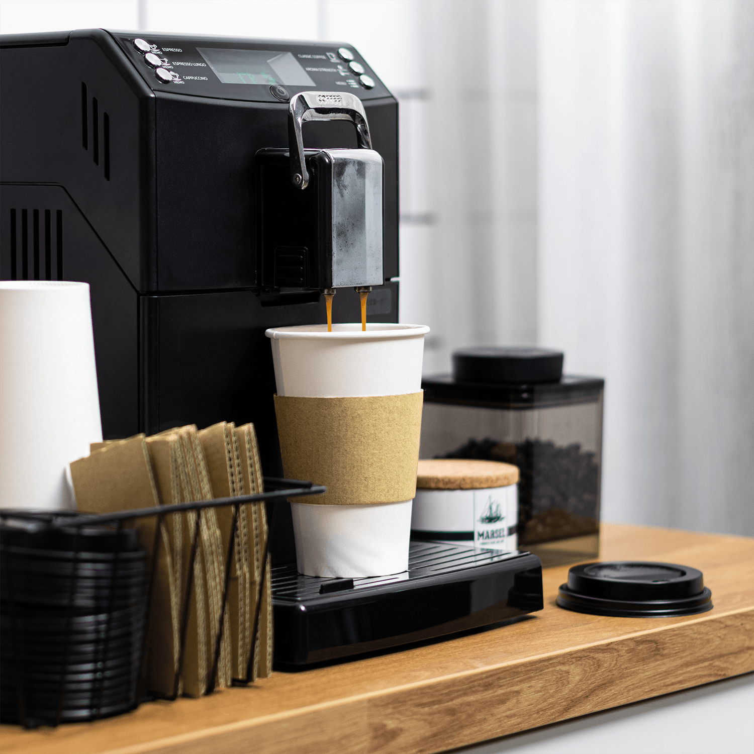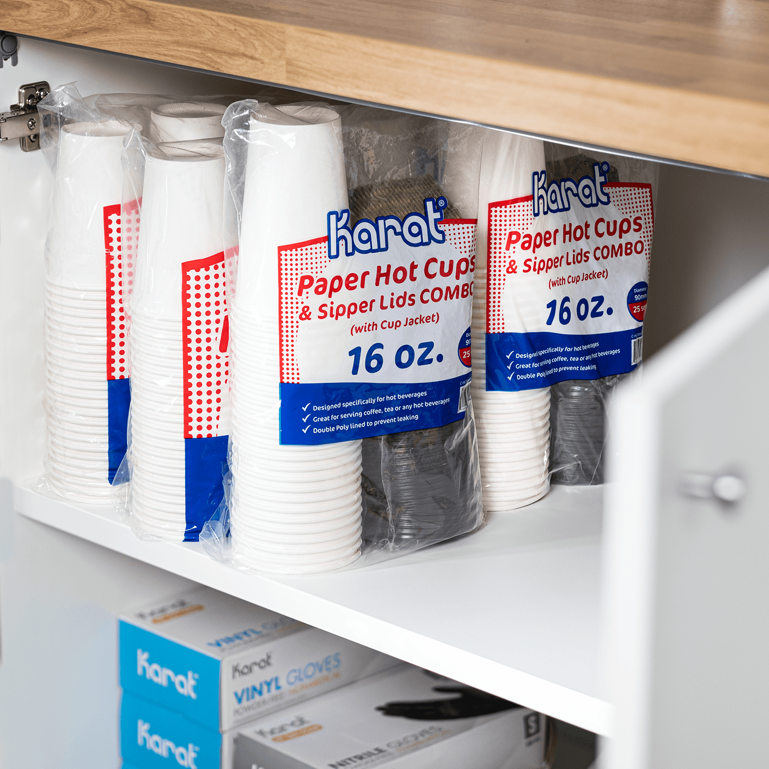 In a stroke of convenience and foresight, we offer the Karat Premium 16 oz Paper Hot Cups as part of a meticulously curated set, complete with cup lids and cup jackets. Picture the ease of having everything you need in a single package – the cup, the secure lid, and the insulating jacket, harmoniously united to preserve temperature and protect your hands.