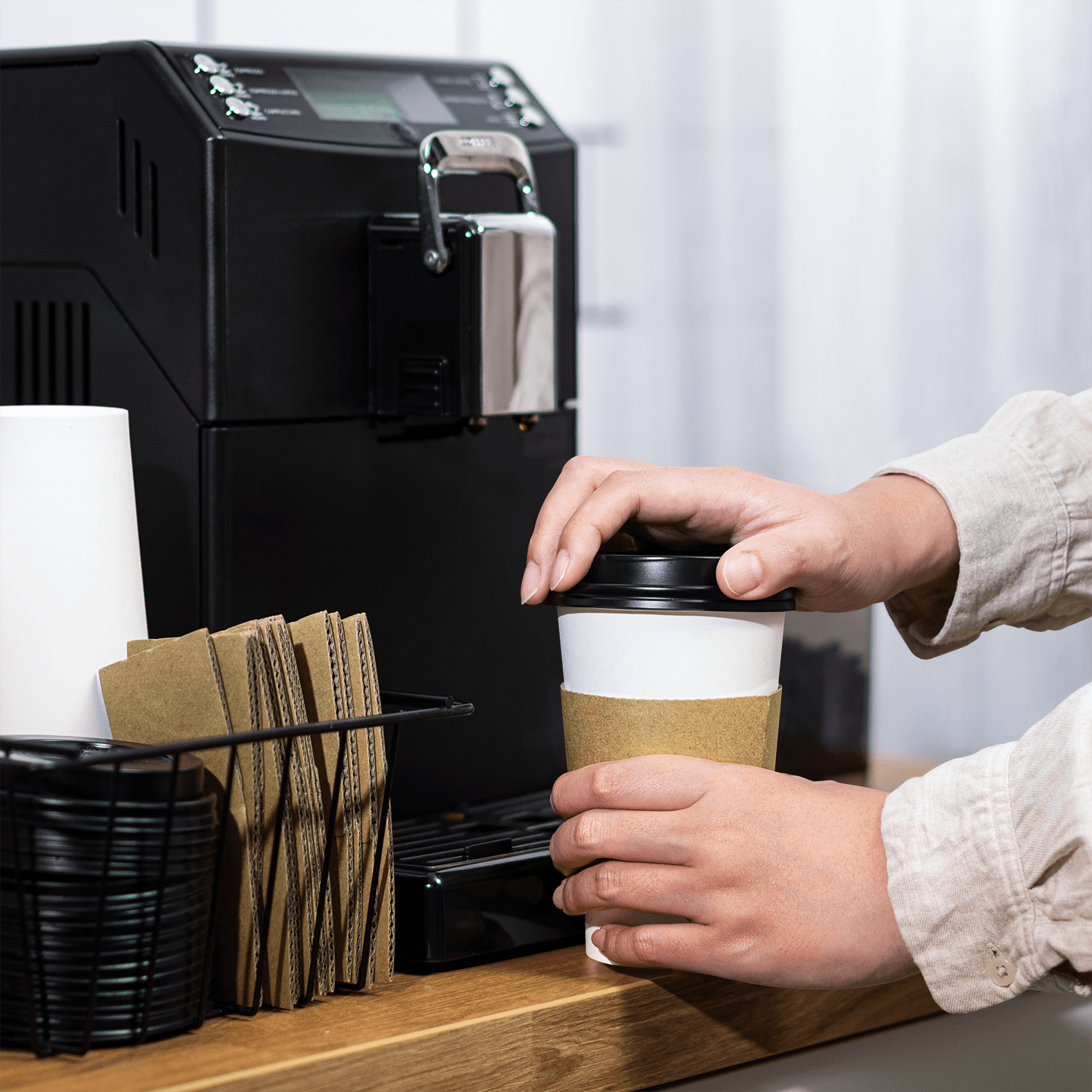 ![C-HC16W-COMBO_09 [250 sets] 16 oz White Paper Coffee Cups with Black PP Sipper Lids & Cup Jackets - Image 1](https://packerjanitorial.com/wp-content/uploads/2025/12/C-HC16W-COMBO_09.png)