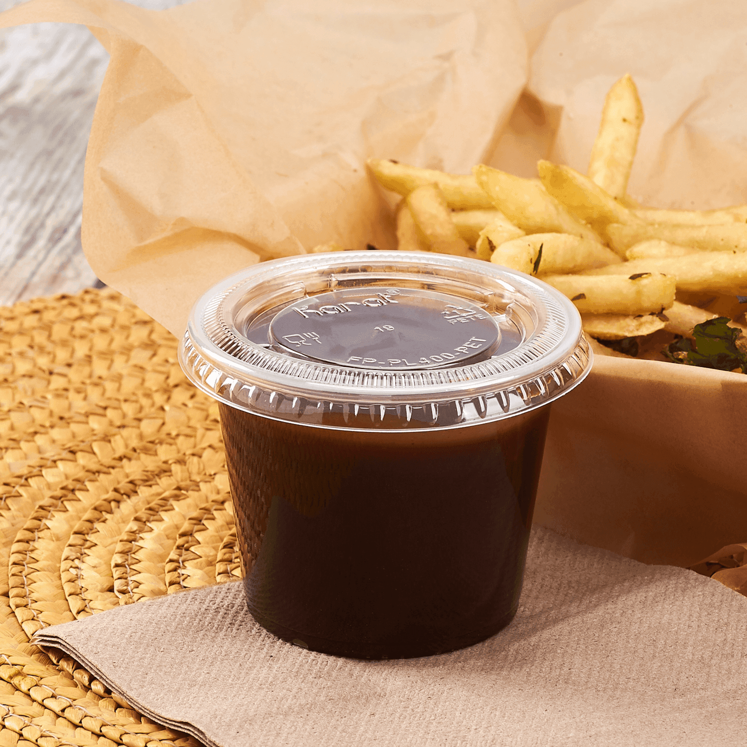 Karat Portion Cups are made from high quality polypropylene (PP) material. Great for storing dressings, sauces, or even dips. Matching PET Portion Cup Lids are available for convenient transportation and to-go items.