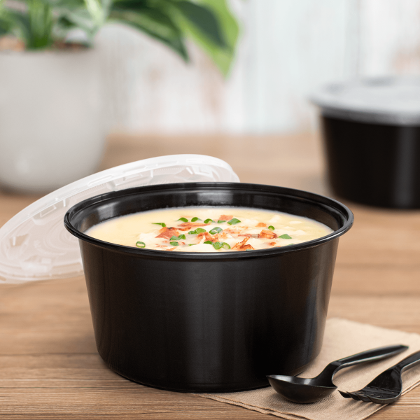 Prepare soups, rice bowls or mixed veggies in the Karat PP Plastic Injection Mold Bowls. Made from food-safe materials, this durable bowl is perfect for packing meals to go. The benefit of PP injection molding is a product that is microwave-safe, dishwasher-safe and freezer-safe! Pair it with the matching lid for a leak-proof seal.