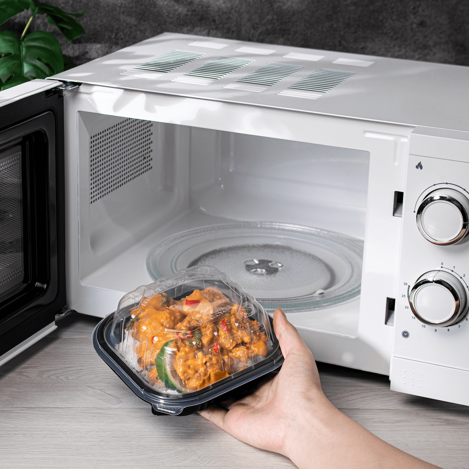 Karat® offers three types of hinged food containers, made of PET, PP, and Premium PP, designed for the safe and convenient transport of hot and cold foods. The Premium PP hinged containers are also ideal for hot, fresh food and microwaving, featuring four vents. These containers are sturdy and versatile, making them suitable for all types of food packaging.