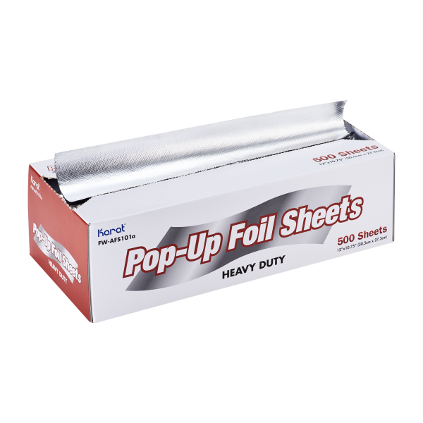 Wrap up to-go items or your left over food and ingredients in Karat® heavy-duty aluminum foil pop-up sheets! Pre-cut sheets allow for quick and easy use for catering services, restaurants and more. Foil pop-up sheets will maintain the temperature of your hot or cold foods. They are oven-safe, heavy-duty and leak-resistant. Our heavy-duty sheets are thicker and stronger for less breakage.