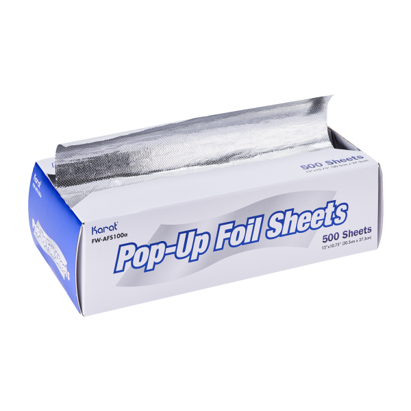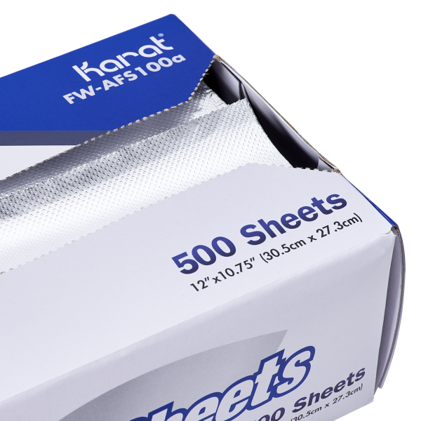 Wrap up to-go items or your left over food and ingredients in Karat® aluminum foil pop-up sheets! Pre-cut sheets allow for quick and easy use for catering services, restaurants and more. Foil pop-up sheets will maintain the temperature of your hot or cold foods. They are oven safe and leak resistant.
