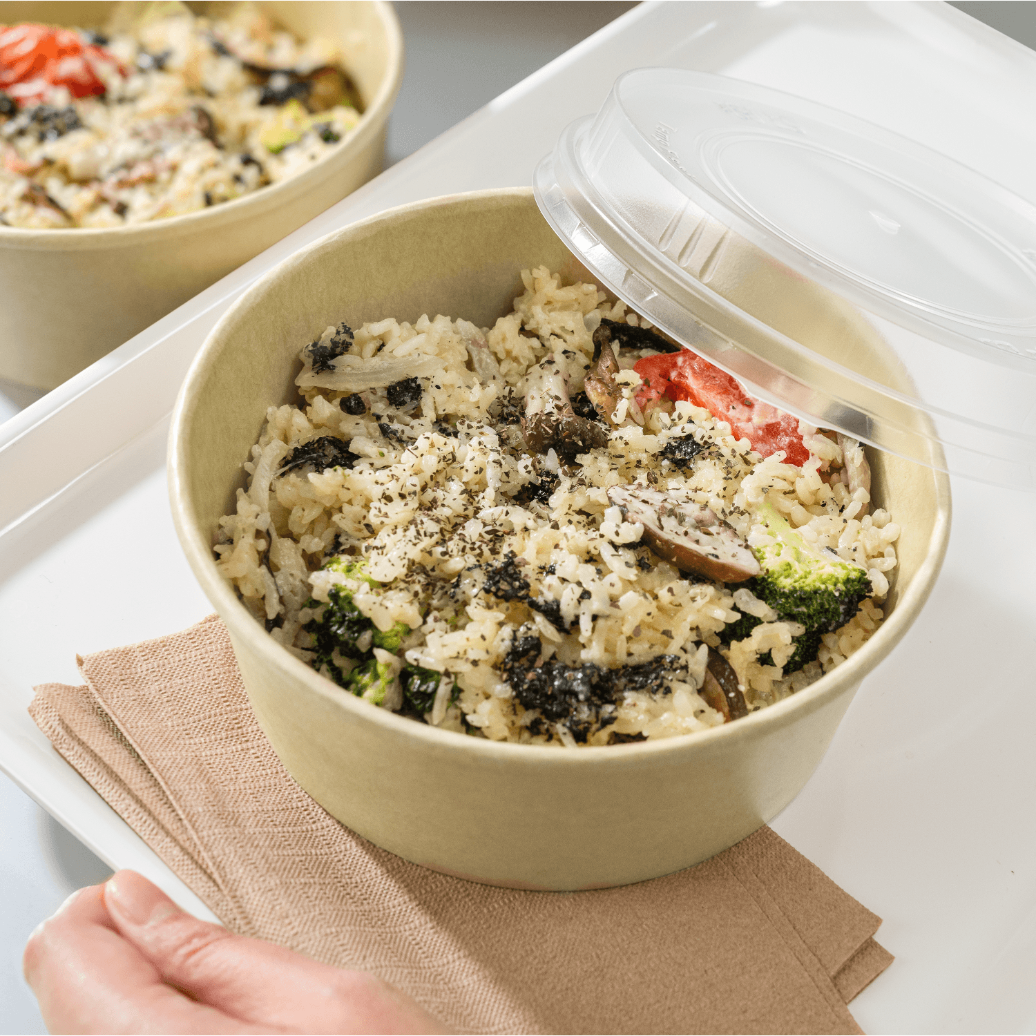 Karat Paper Short Bucket is constructed from sturdy SBS and features a leak-resistant, polyethylene-coated paper. The result grease stays off surfaces, and food remains impeccably insulated, maintaining quality and presentation. Whether serving piping hot soups or refreshing cold salads, this bucket accommodates both, providing a reliable solution for a diverse menu.