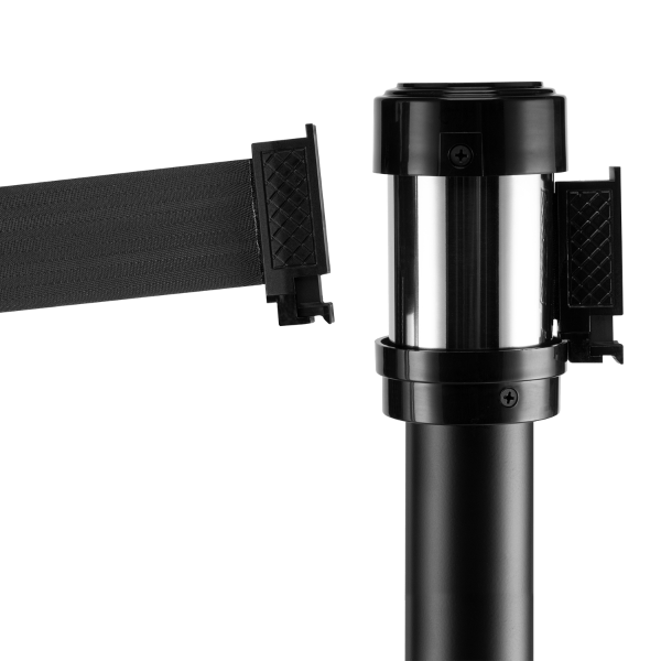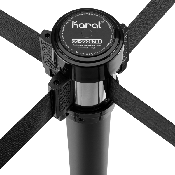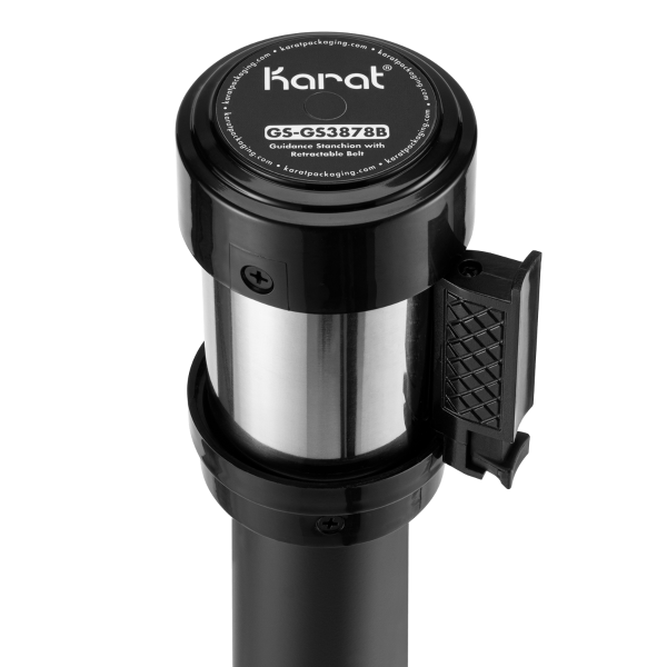Easily regulate foot traffic for your business or event with Karat 38″ Guidance Stanchion in either black or silver steel. The retractable 78″ polyester belt has a safety hook created to prevent sudden or accidental belt releases. These flexible hooks grip on to the cassette with ease making it quick to assemble and no tools required! Its unique design allows for up to 14 hooks to connect on a single stanchion! The Karat Guidance Stanchions are the ideal line management solution and crowd barrier protection.