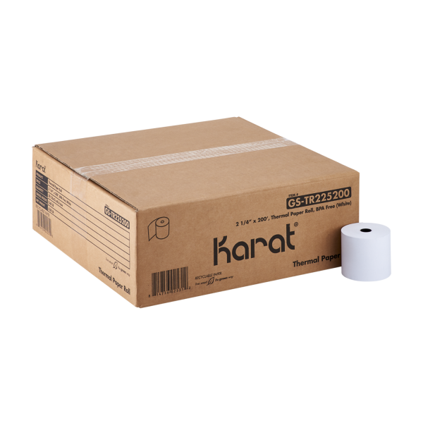 Karat® thermal paper rolls provide a high quality and clear prints for any business use. These rolls are ideal for: cash registers, credit card machines, mobile printers and more. Karat thermal paper rolls are BPA free and are available in multiple sizes which fit the most common thermal POS printers. Print with these easy-replaceable thermal paper rolls to keep track of purchases and or records.