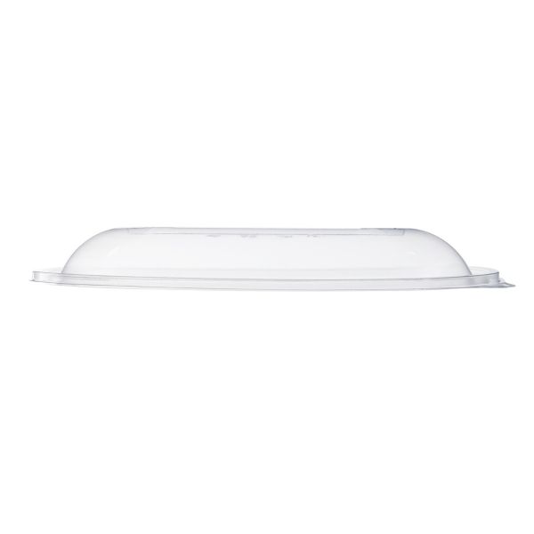 Each Karat PET Dome lid is clear and will allow servers or customers to identify the food contents for seamless distribution.