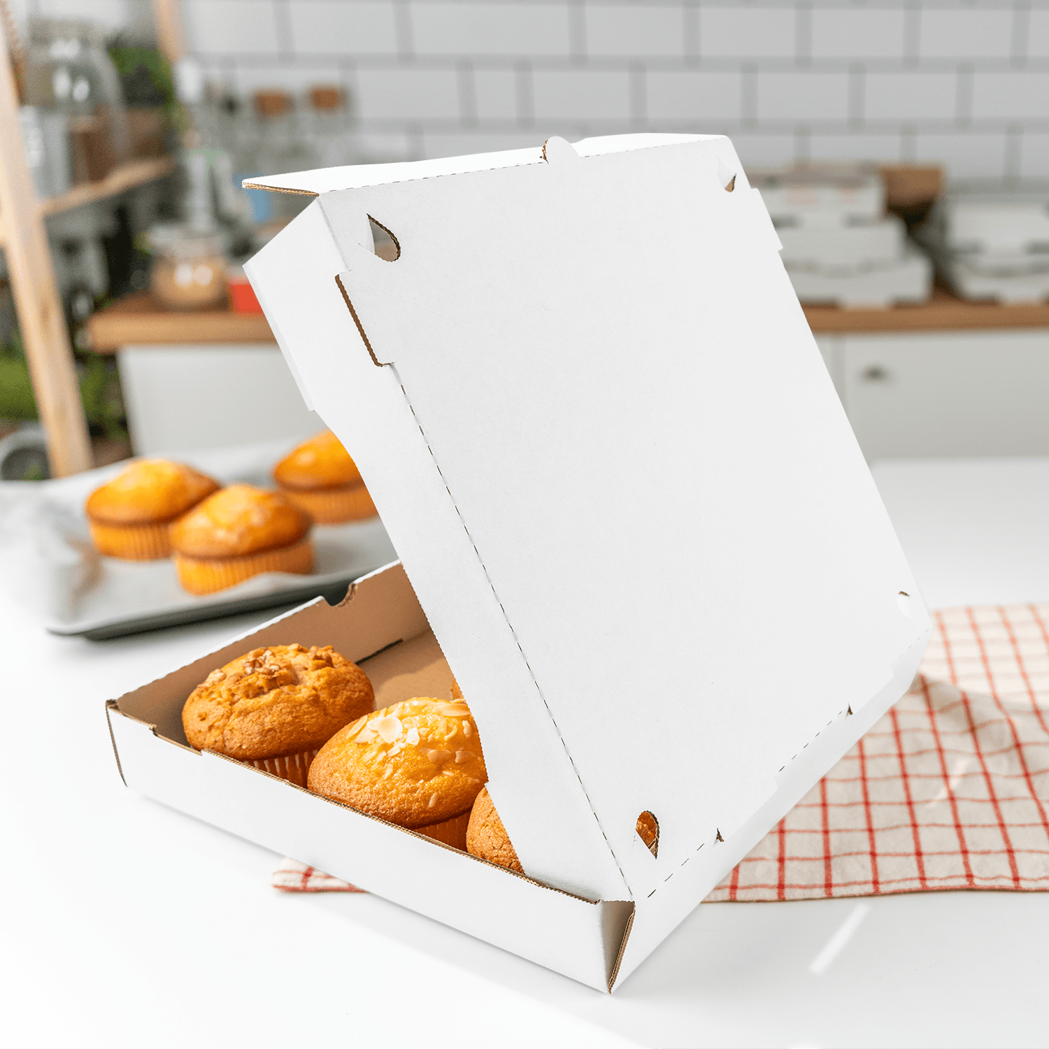 The thoughtful design features 4 vent holes on the top, ensuring your pizzas and pies remain fresh and delectable, reminiscent of just emerging from the oven. Enjoy a seamless dining experience by tearing the top off to transform the box into a generously-sized plate, eliminating the need for extra dishes.