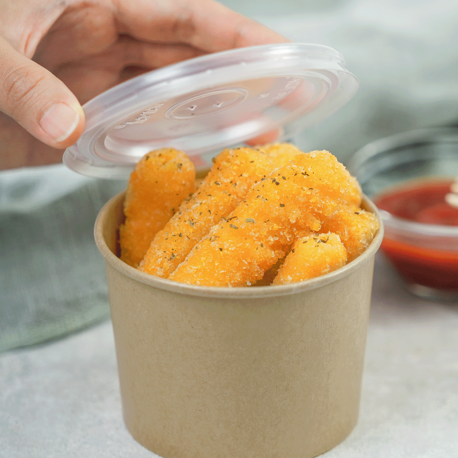 Our gourmet paper food container, with a consistent 96mm rim, offer a seamless experience when paired with our dome or flat lids. The sturdy construction makes them perfect for on-the-go use, providing a reliable option for both customers and food service professionals.