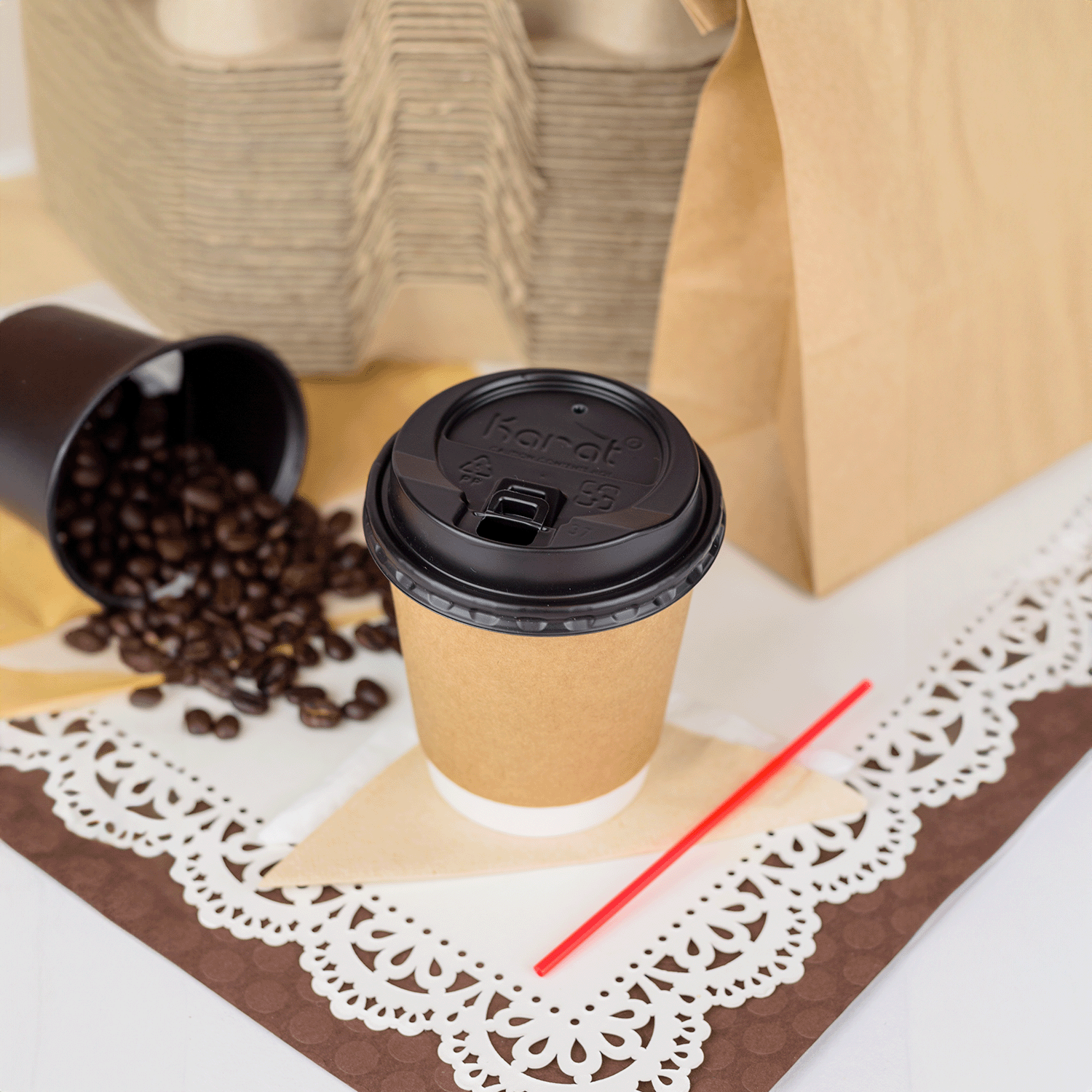 Karat insulated hot cups allow for a comfortable grip without using a cup jacket. These hot cups feature an extra layer of insulation, keeping beverages hot while protecting hands from the contents of the cup. Each cup is individually wrapped in plastic for sanitary dispensing. Custom printing is available.