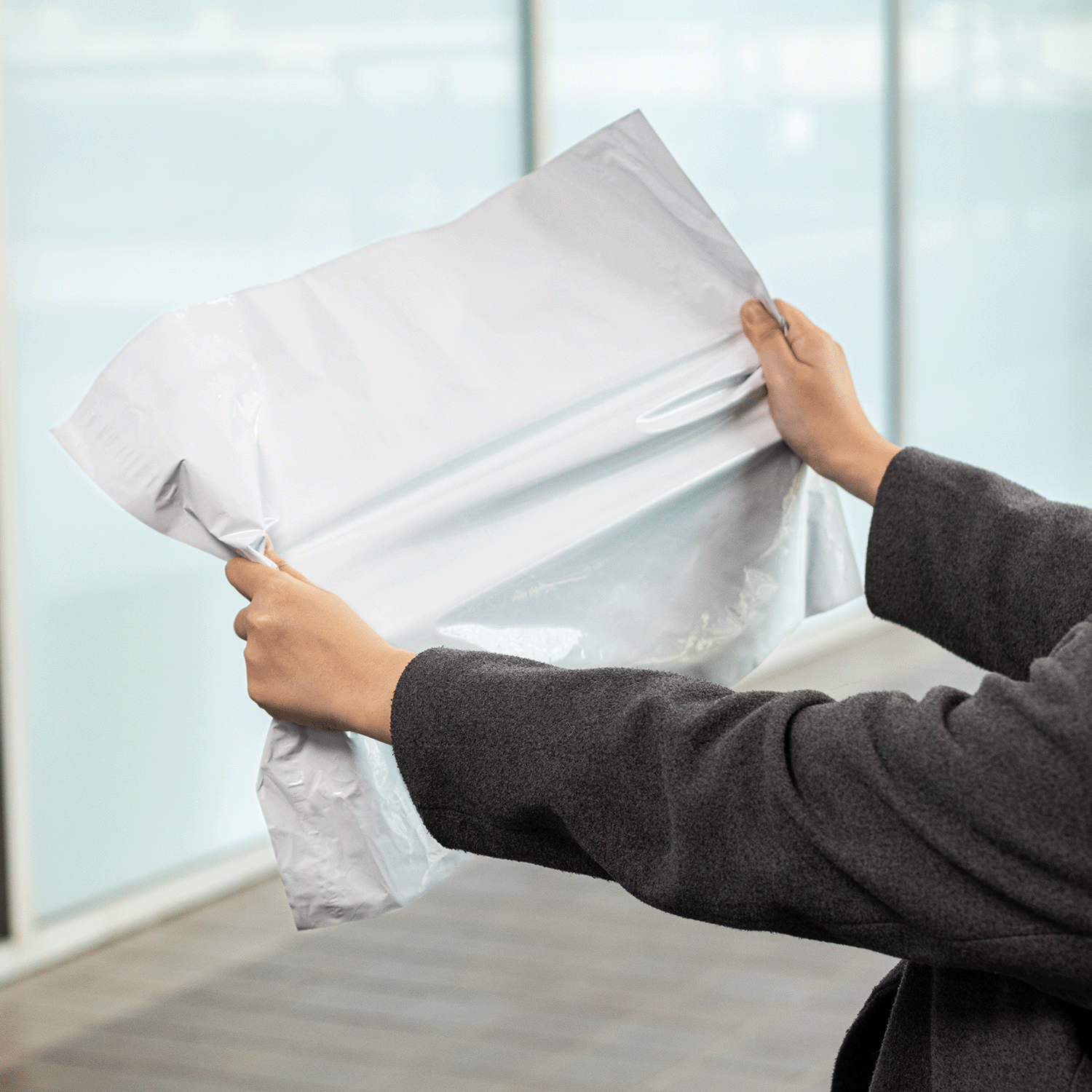 This White Poly Mailers measure 15.75″x17.33″ and features a Tamper-Evident Adhesive Closure to guarantee privacy and protection during shipping. This mailer offers a lightweight yet sturdy solution for shipping various items. The material is resistant to tears and water, guaranteeing that products reach their destination in pristine condition.