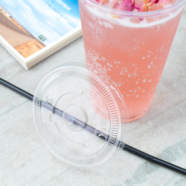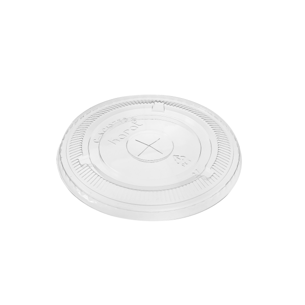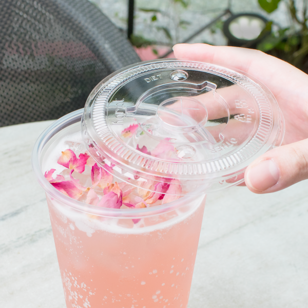 Karat 104.5mm PET Plastic Flat Lids are designed to fit Karat 32oz paper cold cups and PolyPro cups. These lids can also fit other name brands cups with a 104.5mm diameter. Lids are made of crystal clear plastic and feature buttons labeled “Diet” and “Other” for easy drink identification.