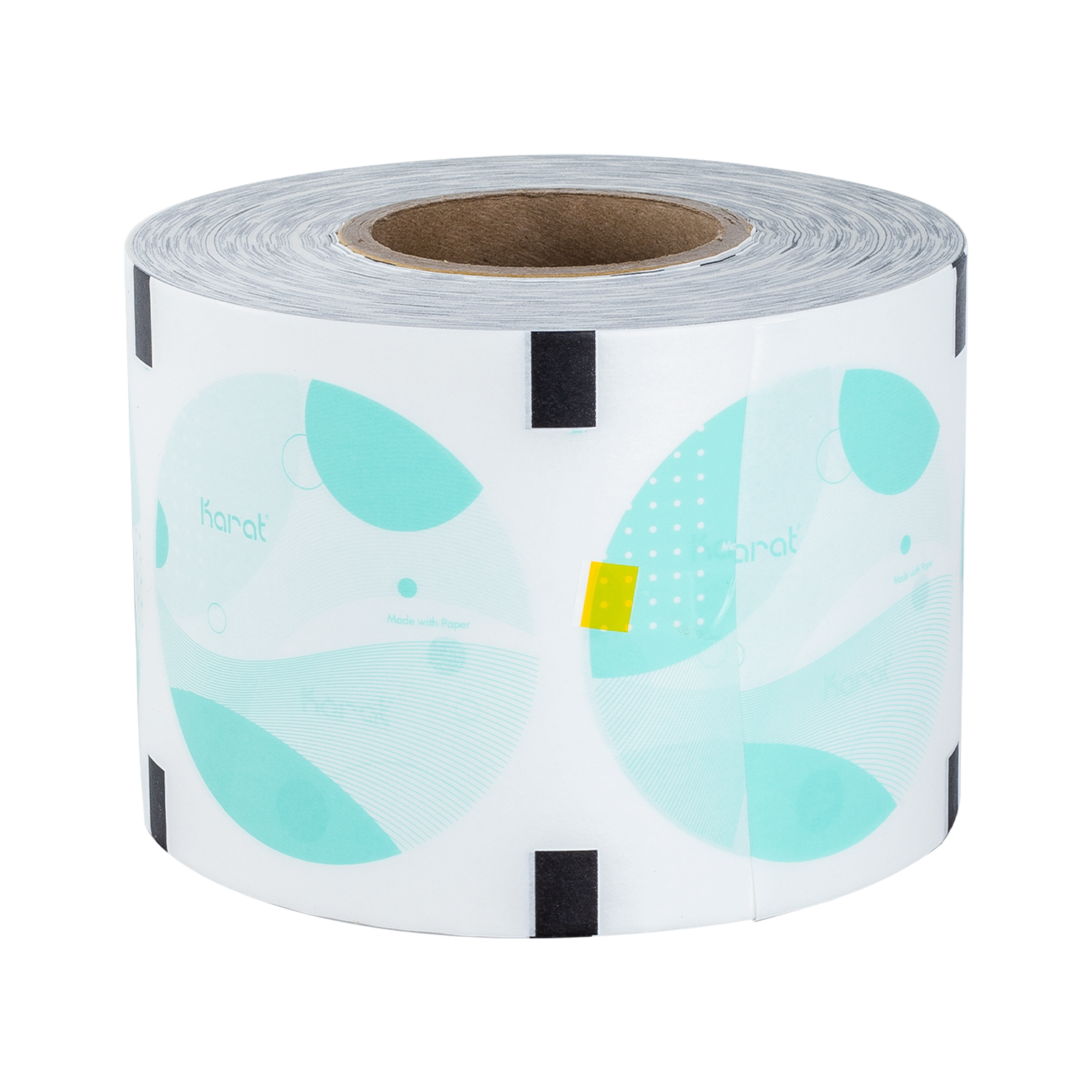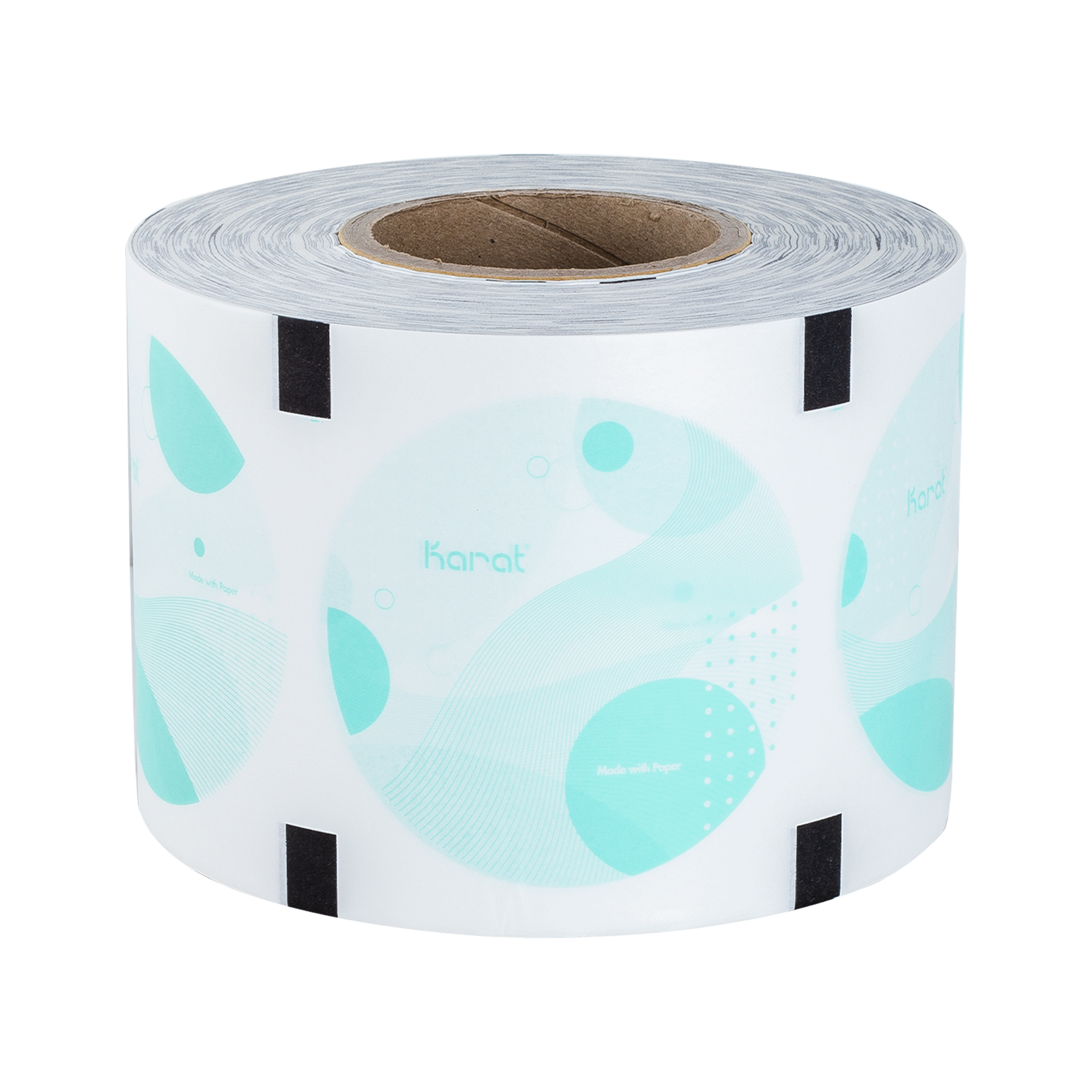 Karat Paper Seal, 90-95mm, Generic Print, 230m x 6 rolls are made from Paper material and are compatible with all sealing machines. These sturdy and waterproof sealing films ensure secure sealing and are coated for leak-proof protection of all drinks. Custom printing is available upon request.