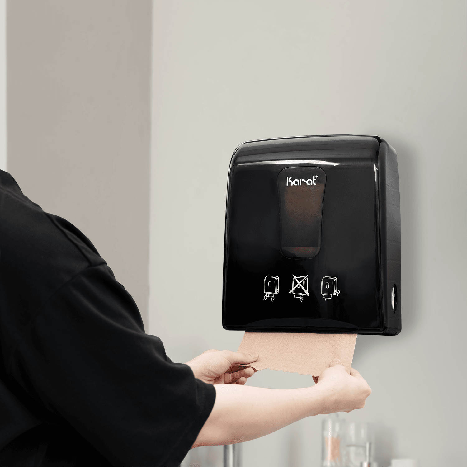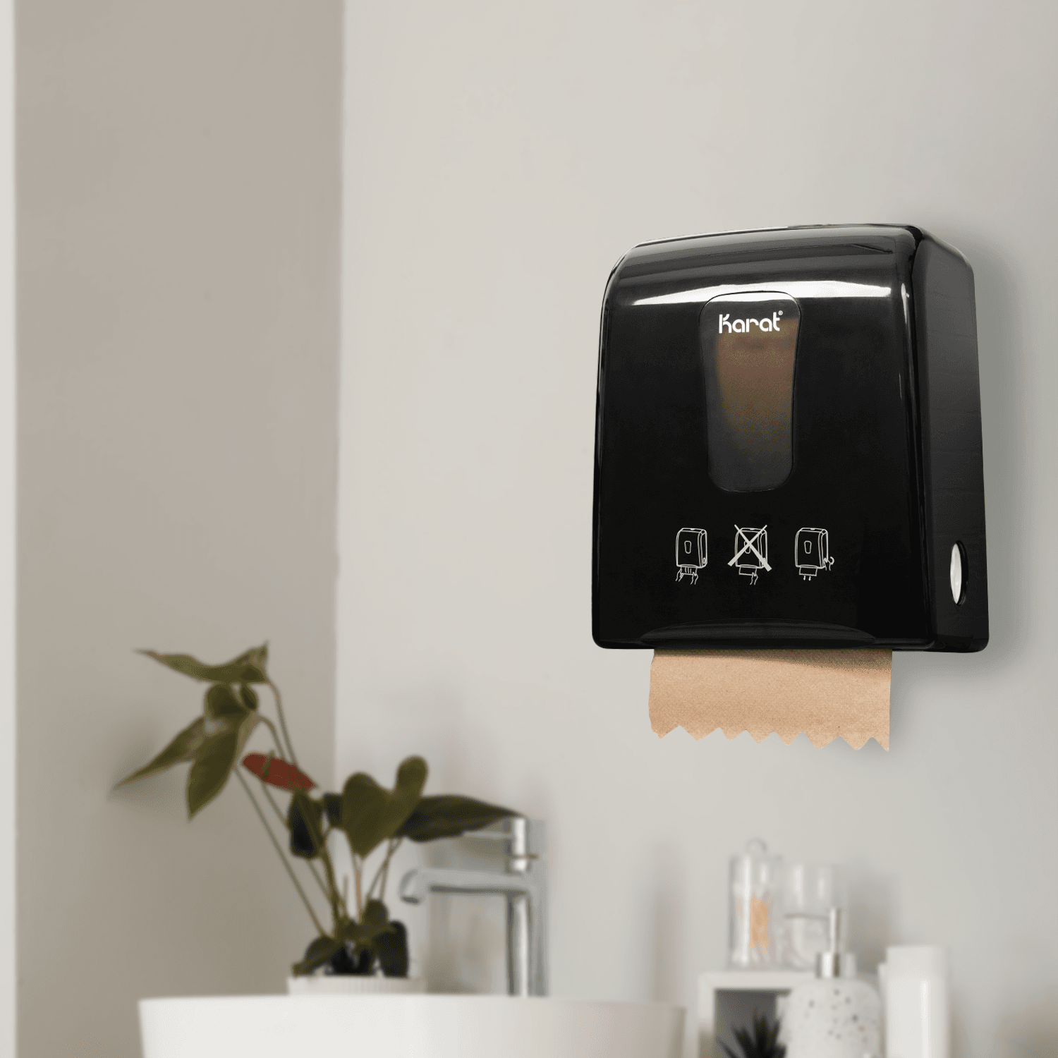 It’s compatible with Karat paper towel (JS-RTK750). Whether it’s for your bustling commercial environment or your home kitchen, this dispenser ensures that drying hands or cleaning up spills is effortless and hygienic.