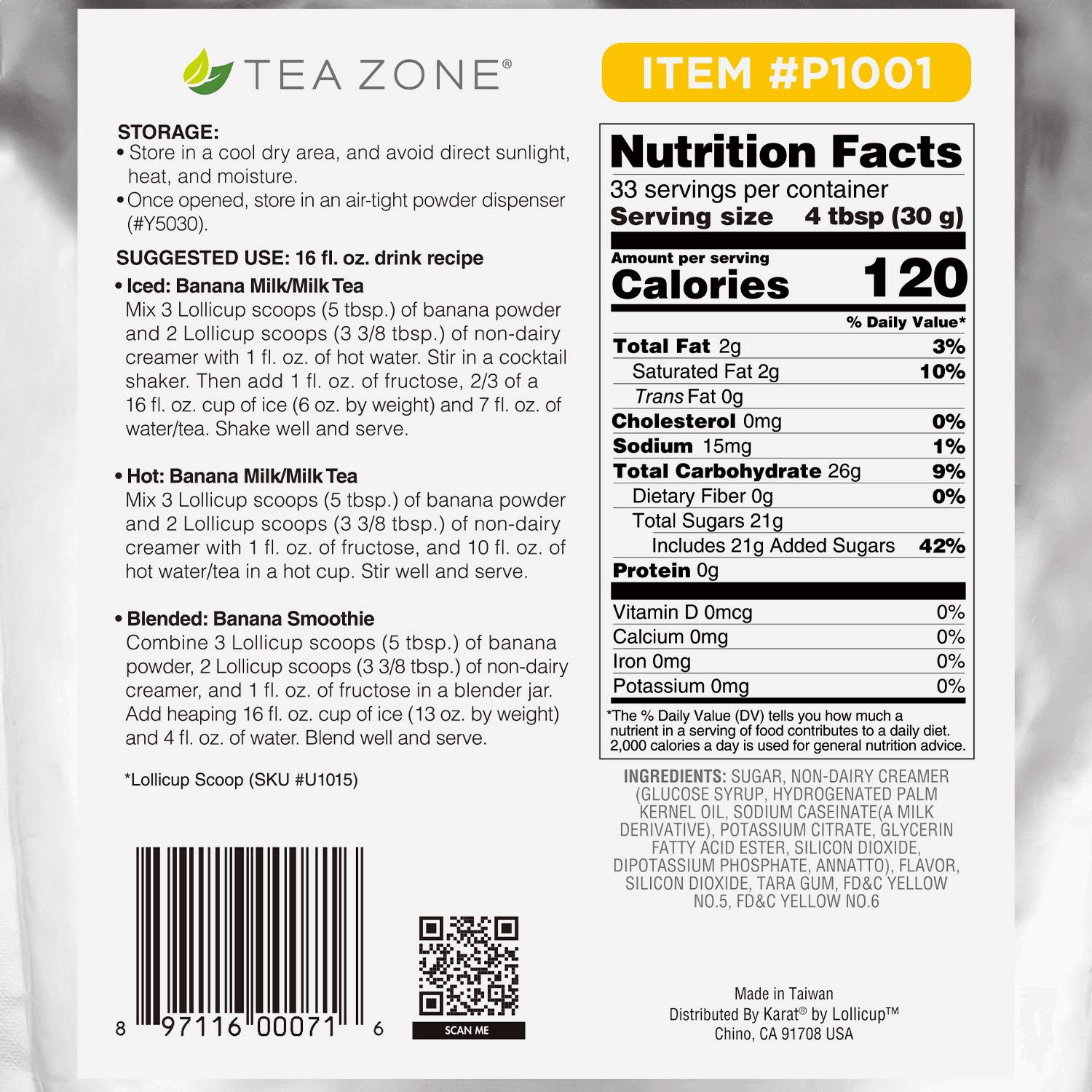 Pack your bags, your taste buds are being sent to a beach with Tea Zone Banana Powder! You’ll feel like you’re having a drink in an island oasis. It contains a creamy banana flavor perfect in any smoothie, milk tea, alcoholic beverage, and various blended drink. It’s perfect for any beverage, hot or cold.