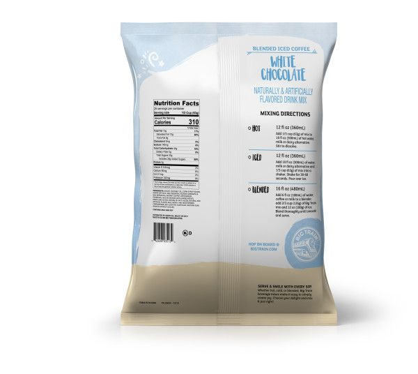 Fans of silky white chocolate will love Big Train’s White Chocolate Latte Blended Ice Coffee Frappe Mix. We source the highest-quality ingredients and carefully blend them to create our irresistible caffeinated mix. Our sweet, creamy blend is sure to refresh with aromatic, full-bodied coffee and the mellow flavor of sweet white chocolate. And our silky base delivers smooth, consistent texture with every cup. Serve hot, iced, or blended.