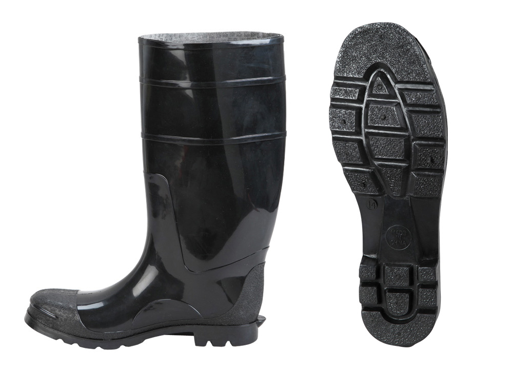 Black PVC Boots, Plain Toe, 16” [size: 5 – 14]