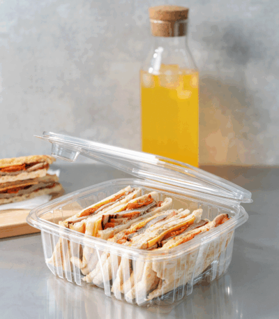 [150 sets] 64 oz PET Tamper Resistant Hinged Deli Containers w/Flat Lid
