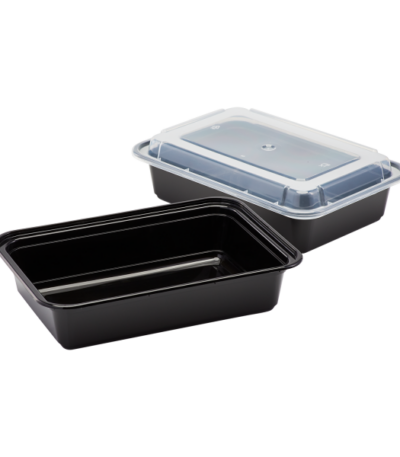 [150 sets] 38 oz PP Plastic Microwavable Rectangular Food Containers & Lids, Black