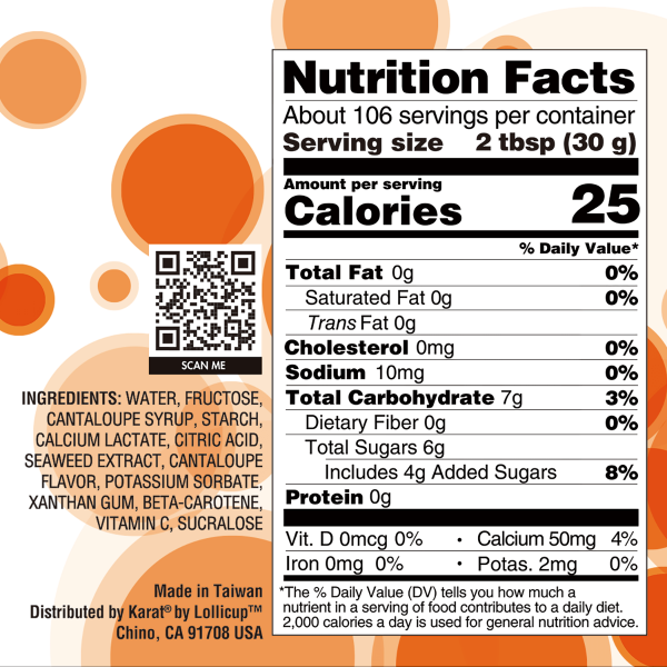 Water, Fructose, Cantaloupe Flavored Syrup, Starch, Calcium Lactate, Seaweed Extract, Flavor, Malic Acid, Potassium Sorbate