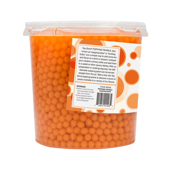 Tea Zone Cantaloupe Popping Pearls are juice pearls filled with a juicy cantaloupe flavor. They are a great addition to iced teas, lemonade, slushies, smoothies, and more!Â